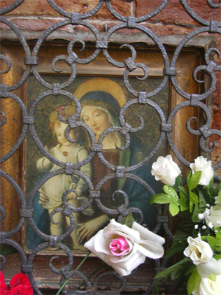 細い路地とは別に、ヴェネツィアを歩いているとしょっちゅう見かけるのが聖母マリアの壁画。