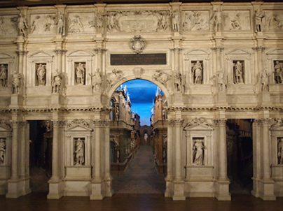この通りの終点にあるのが、彼が最後に設計したといわれる、オリンピコ劇場(Teatro Olimpico)。