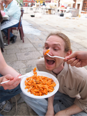 しかも、みんなで輪になって食べてたら、サービスしてお店の人が彼らのまかないのパスタを分けてくれた!!